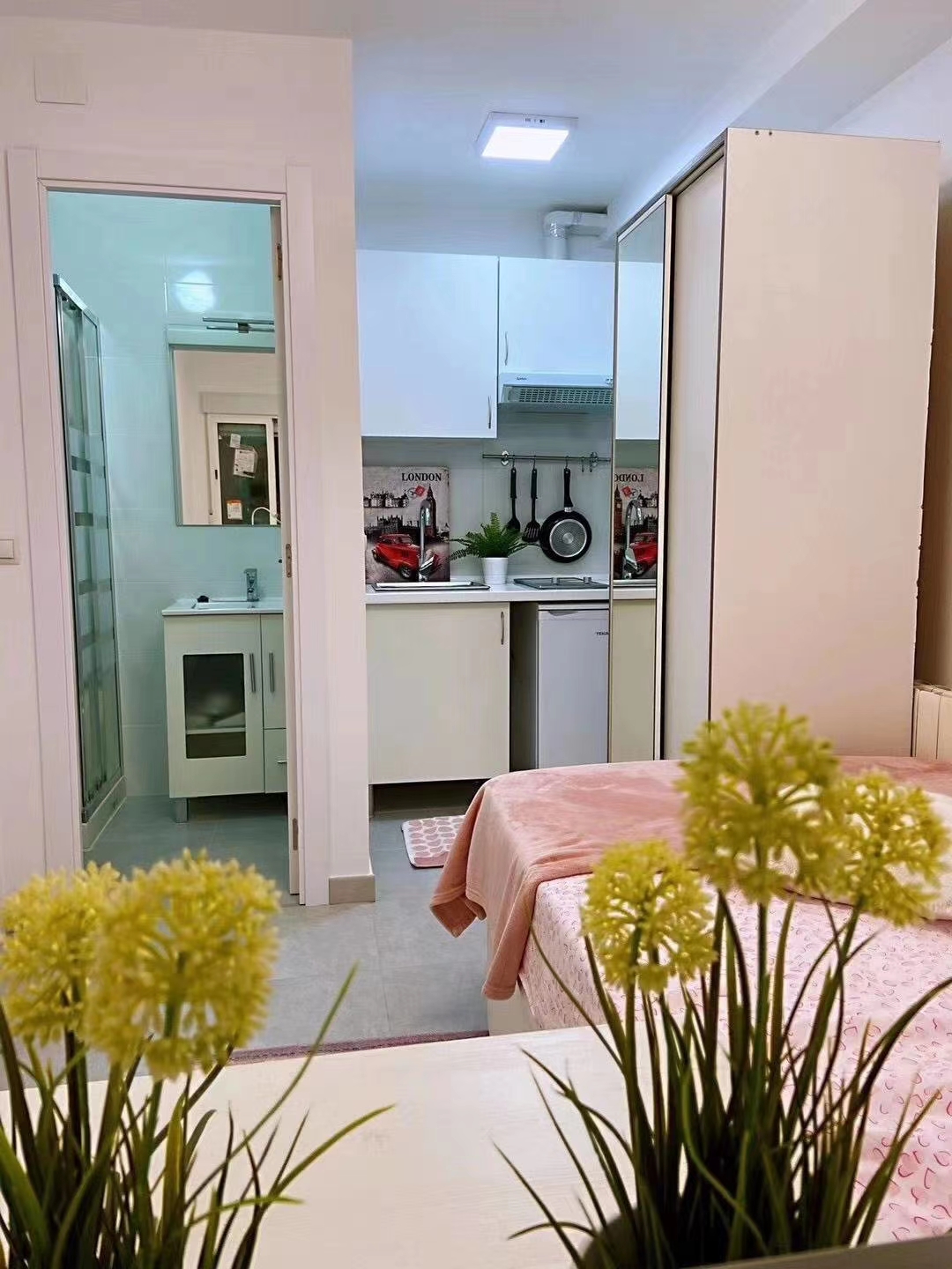🏡房型:单身公寓 概况: 全新装修,全新家具,有空调有暖气,周边环境优雅安静,有超市,健身房,公园等 交通:有小火车C10/C7,离【Pozuelo】大学城四站公交车,3站到【康普Somosaguas校区】 租金:550€【全包】;押金:1个月 联系电话:633 226 617/698 201 867