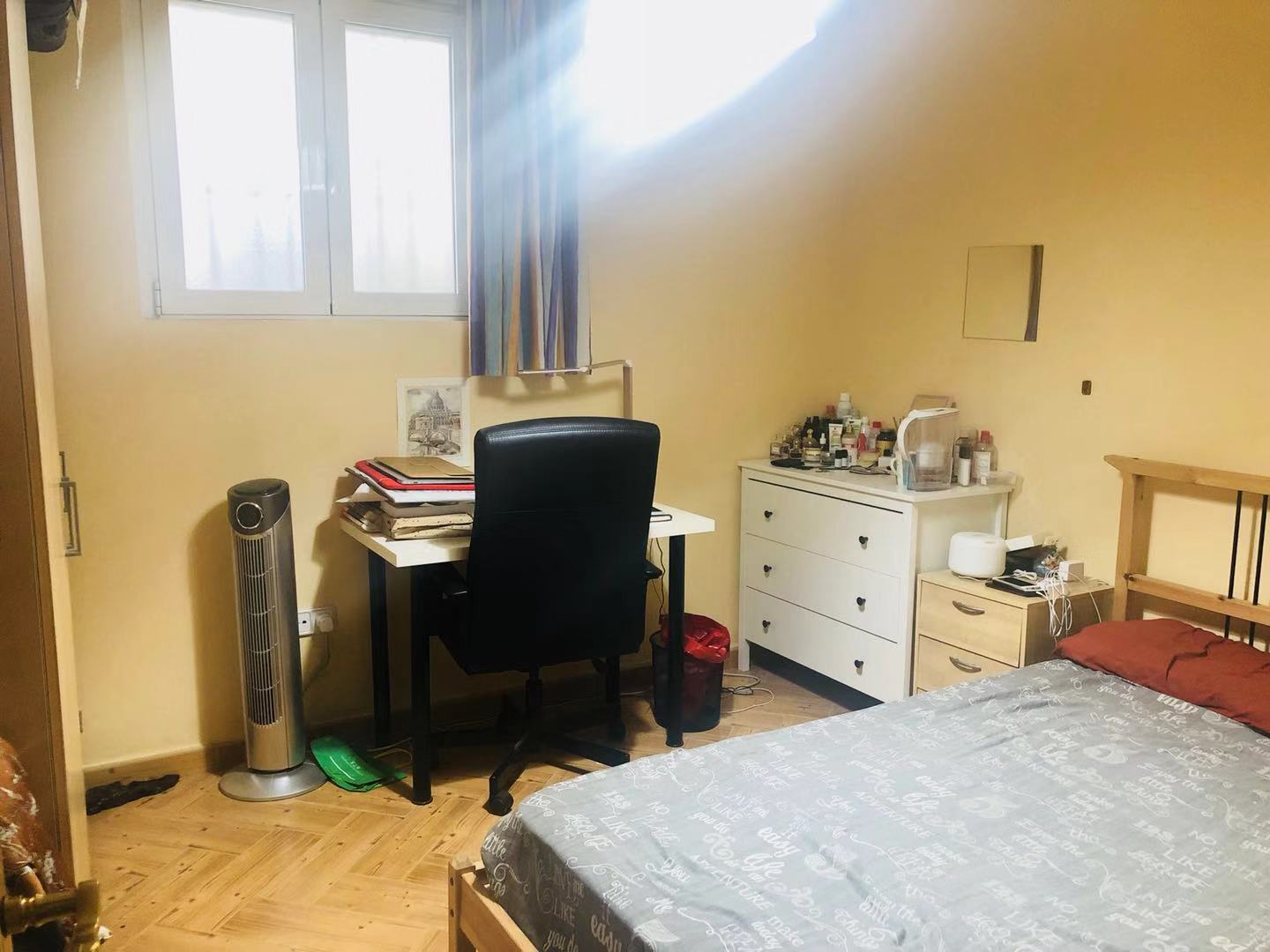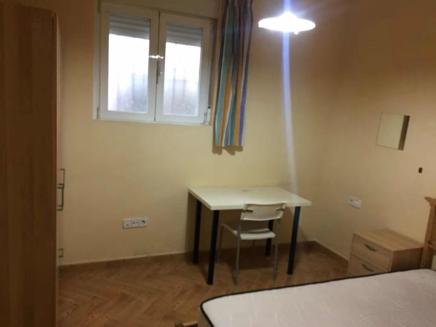 大学城学区房:3号、6号moncloa地铁口4分钟左右,3房(可租4-5人)带一个院子整套出租,1450欧(包中央供暖和物业费)其余费用租客均摊。家电家具齐全,拎包入住。虽然楼层位于bajo,但是房屋对面就是政府部队机关,整栋楼全是西班牙本地人,安全因素无需担心。 押金一个月,房租按月支付即可。11月1号起租,寻找爱干净的租客居住。